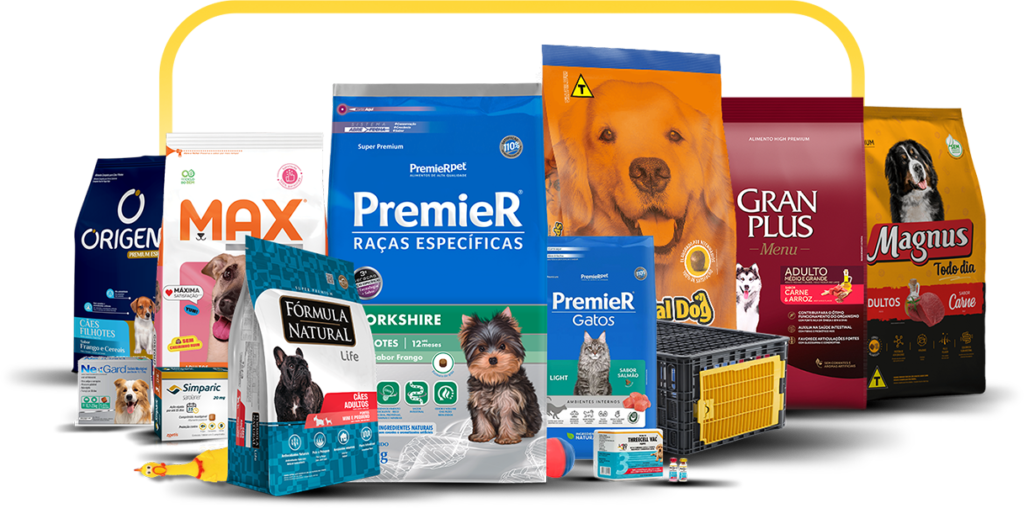 Oferecemos uma variedade de produtos para cães, gatos e outros animais de estimação: